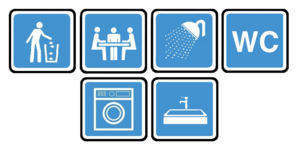 - Les autres déchets ménagers : dans la poubelle à droite de la réception.